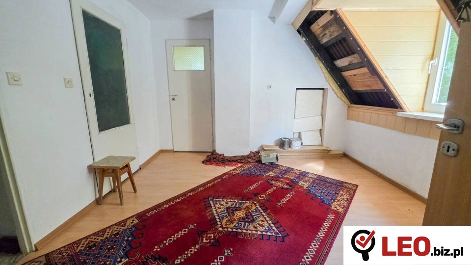 Domek murowany (cegła + pustak), ocieplony styropianem, z nowymi oknami i dachem pokrytym onduliną. Dwie kondygnacje dają sporo przestrzeni i możliwości aranżacyjnych: