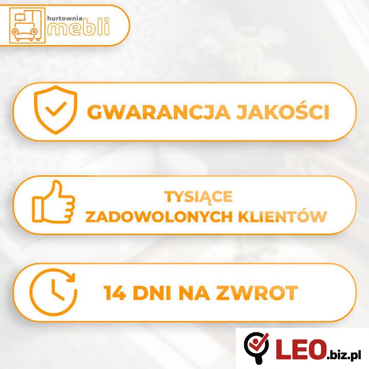 • Mebel jest starannie zabezpieczony, a wysyłka ubezpieczona dla pełnej ochrony zamówienia.