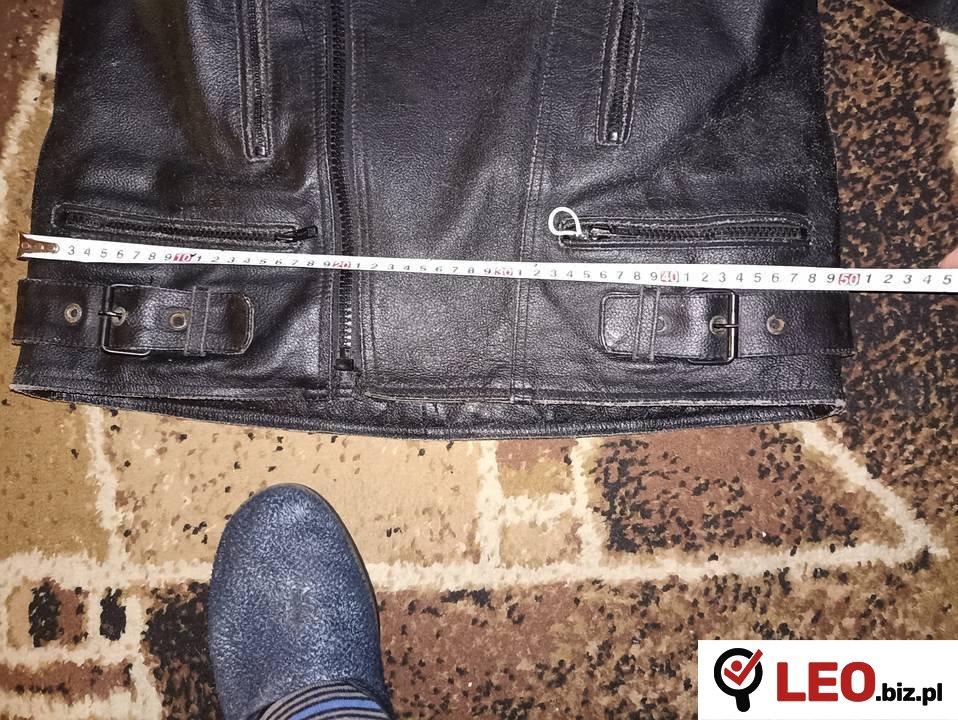 Skórzana kurtka motocyklowa w kolorze czarnym, wykonana z prawdziwej skóry. Używana, Doskonała ochrona podczas jazdy na motocyklu.