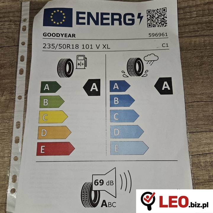 Sprzedam opony letnie GOODYEAR 235/50R18 101 V XL. Opony z nowego samochodu po zmianie na wielosezonowe (przebieg 40km). Odbiór osobisty.