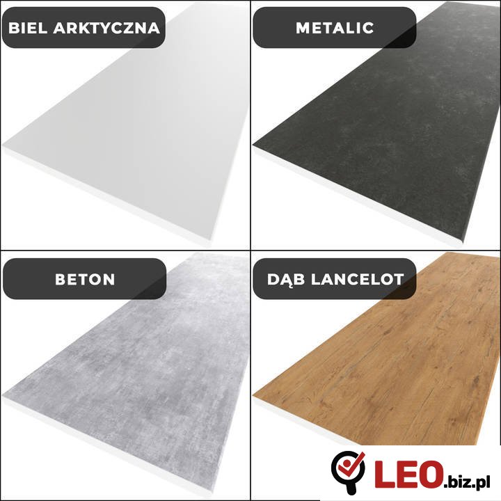 Zestaw zawiera również 160 cm blatu, dostępnego w wielu wariantach kolorystycznych (zdjęcie wszystkich blatów jest dostępne w galerii produktu). Prosimy wpisać wybrany kolor blatu w komentarzu do zamówienia. (W przypadku braku informacji o wybranym kolorze blatu zostanie wysłany blat w kolorze Biel Arktyczna)