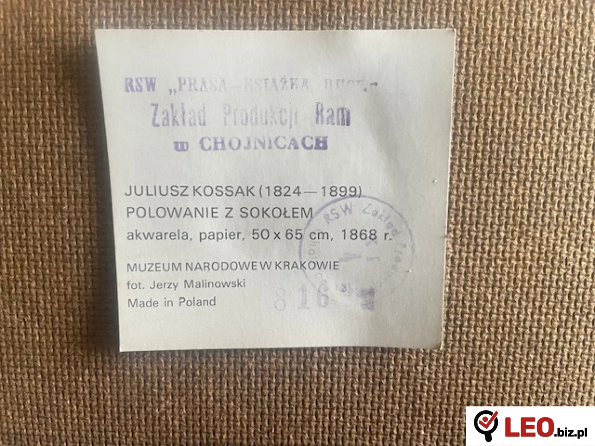- J. Kossak ,,Polowanie na sokoła" 50/65