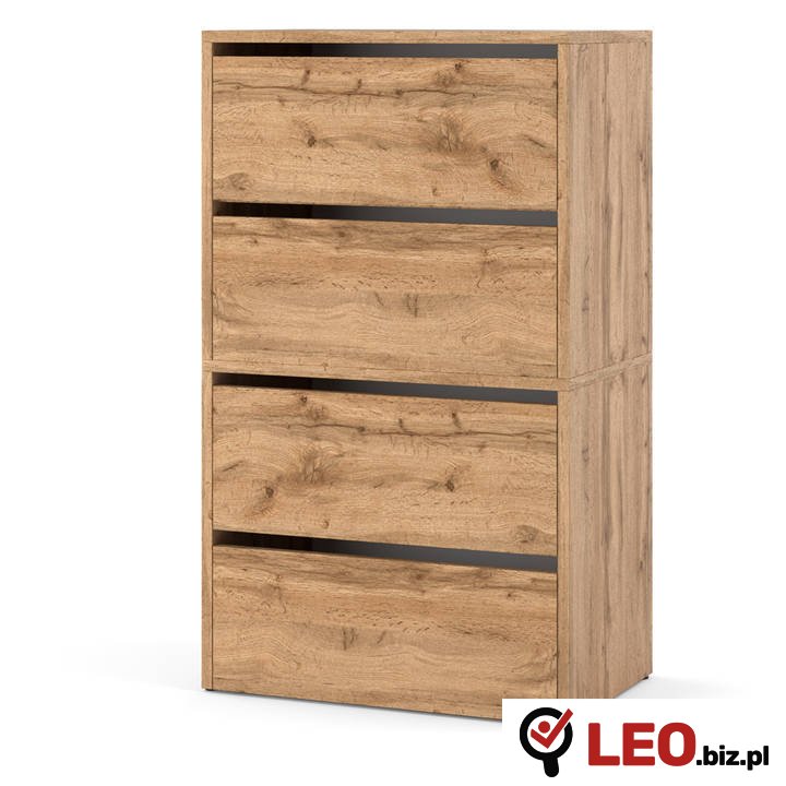 Zestaw 2 Szafek na buty HUGO to idealne rozwiązanie dla osób, które chcą uporządkować swoje buty i jednocześnie nadać styl swojemu przedpokojowi. Połączenie naturalnego koloru nadaje szafkom nowoczesny i elegancki wygląd. Funkcjonalność i estetyka w jednym!