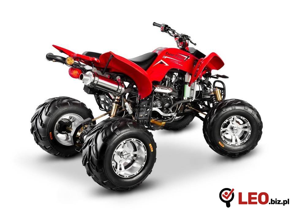 Zalety Road Huntera 200 wybiegają jednak znacznie dalej Quad napędzany jest silnikiem jednocylindrowym, chłodzonym olejem, o pojemności 200 ccm. Kierowcę wspiera wygodna automatyczna skrzynia biegów, dzięki której jednostka zawsze pracuje w optymalnym zakresie obrotów, a to z kolei gwarantuje pełne osiągi w każdej, nawet najtrudniejszej sytuacji offroadowej. Road Hunter 200 to jeden z niewielu quadów tej kategorii, który z tyłu posiada niezależne zawieszenie: koła tylne zamontowane są na podwójnych wahaczach, z własnymi amortyzatorami, a napęd przekazywany jest za pomocą dyferencjału i solidnych półosi. Każdy z czterech amortyzatorów posiada regulację napięcia wstępnego sprężyny. Wahacze posiadają kalamitki usprawniające smarowanie, a w dopasowaniu quada do trudnych przepraw pomogą też regulowane kąty pochylNiezbędnik przeprawowy dopełniają imponujące opony – z wysokim profilem oraz szerokim i agresywnym bieżnikiem. Nie ma najmniejszej wątpliwości, że Barton Road Hunter 200 potrafi zadowolić każdego: od nastoletniego fana motoryzacji, przez praktyka poszukującego pojazdu pomocnego w sadzie, a na amatorze offroadowych