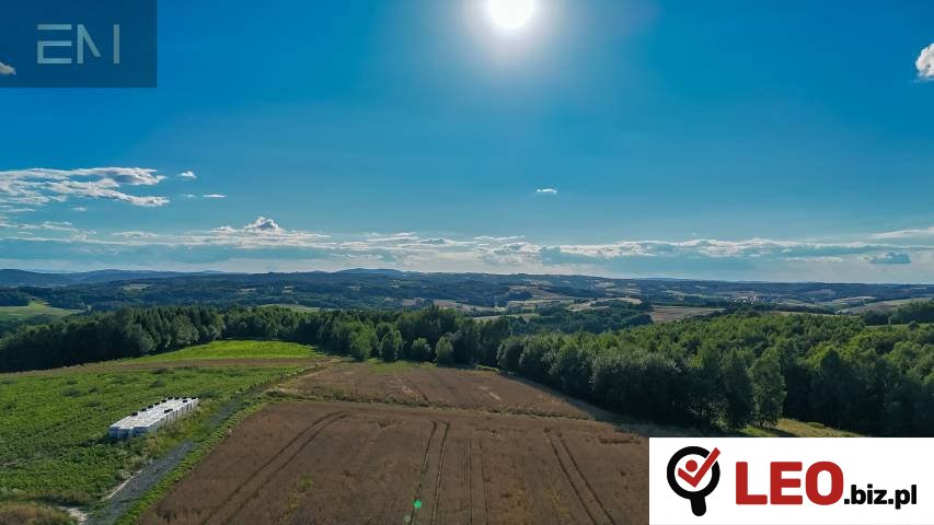 Działka położona w spokojnym, cichym miejscu, w otoczeniu lasów z widokiem na pogórze.