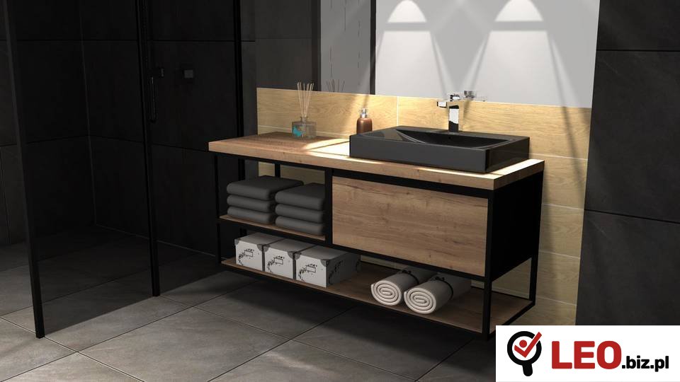 Industrialna szafka o prostej i ponadczasowej formie będzie dopełnieniem każdej łazienki. Smukły, metalowy stelaż w połączeniu z odcieniem dębu, dzięki czemu mebel idealnie pasuje do każdej łazienki. Funkcjonalna szafka oferuje sporo miejsca do przechowywania. Duża i pojemna szuflada z funkcją cichego domyku oraz zgrabna półka. Solidny i wodoodporny blat gwarantuje zadowolenie z użytkowania przez wiele lat. Ażurowa linia optycznie nie zabiera przestrzeni, co jest atutem w niewielkich pomieszczeniach. Szafka wykonana została z dbałością o każdy szczegół, stanie się ona niekwestionowaną ozdobą Twojej łazienki !